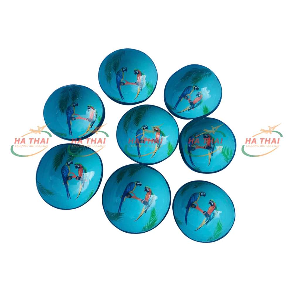 Handmade Lacquer Coconut Bowl With Parrot (CB091)
