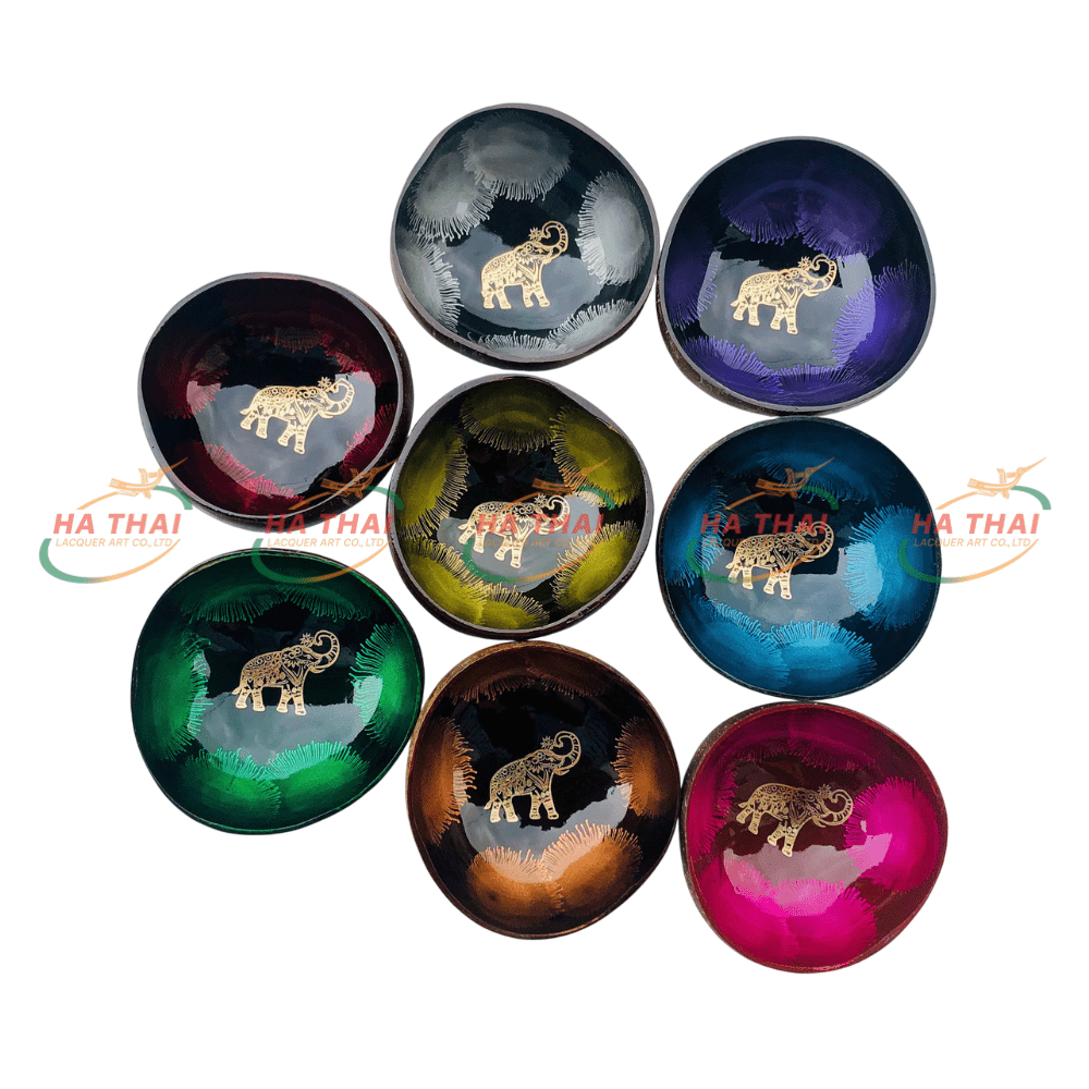 Export lacquer coconut shell bowl with black elephant (CB059)